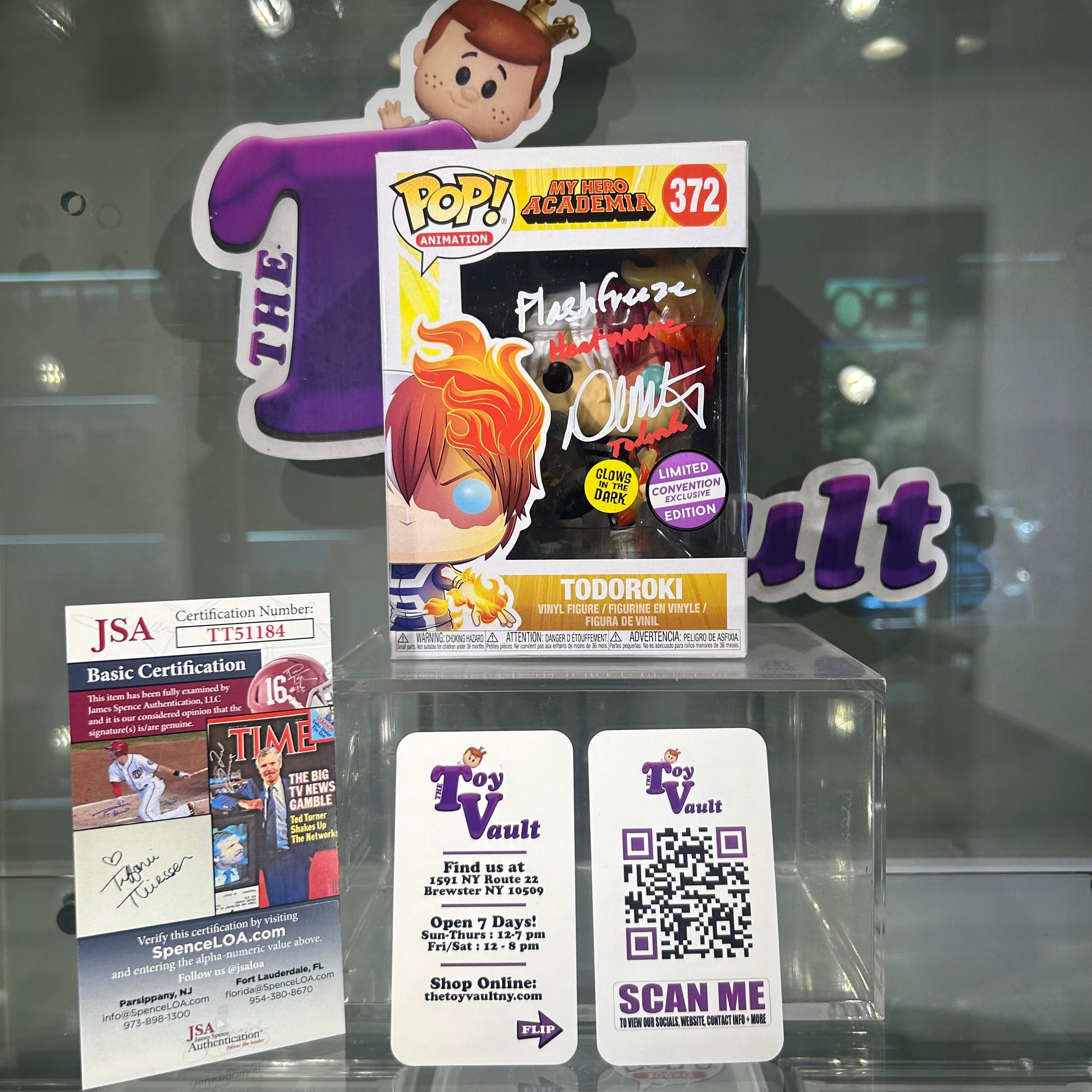 Bring home the excitement of My Hero Academia with this exclusive Todoroki Funko Pop! figure. Featuring a glow-in-the-dark design, this figure is a must-have for any collector. But what makes it truly special is the added bonus of being signed by David Matranga, the voice of Todoroki himself!
